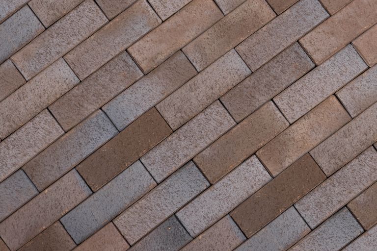 Verwerk de klinkers van verschillende pallets door elkaar, dan vormt zich een juiste kleur nuancering.